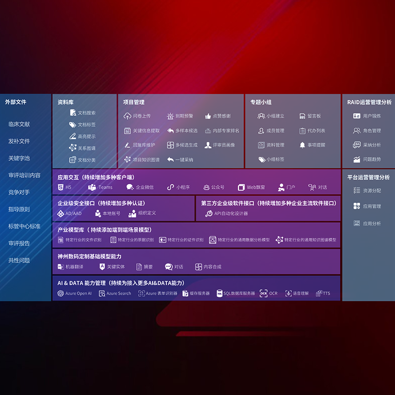 医疗器械产品上市前,,,,要熟悉严格与繁复评审标准,,,,整理分析监管机构指导文件中的海量信息。。。。企业急需一个智能化解决方案,,,提升知识管理效率,,,,提高评审通过率,,,以提升其市场竞争力。。。。